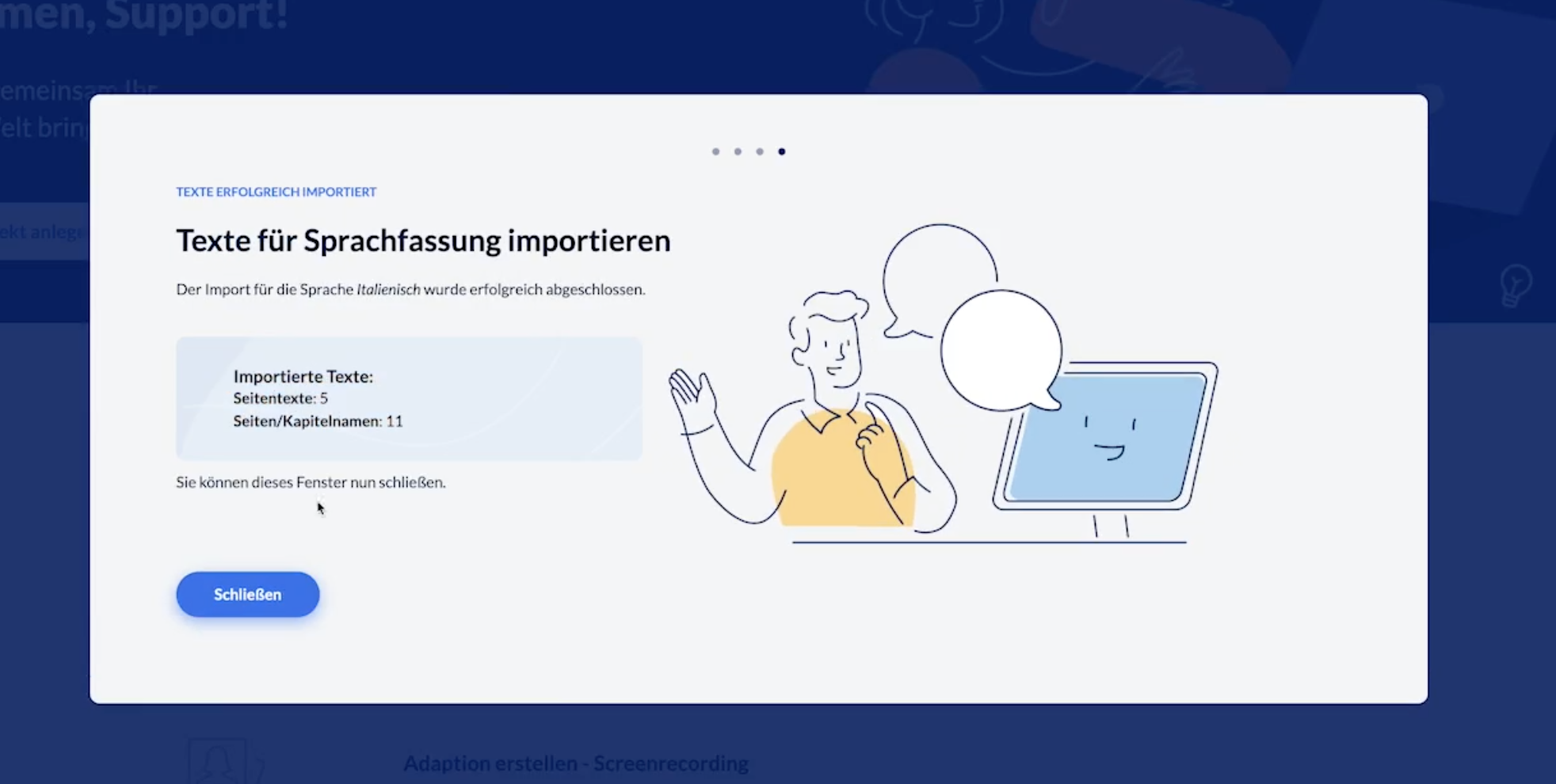 Sofern Sie die überarbeitete Datei von ihrem Übersetzungsbüro erhalten haben, können Sie diese über "XML importieren" in ihr Projekt laden.
