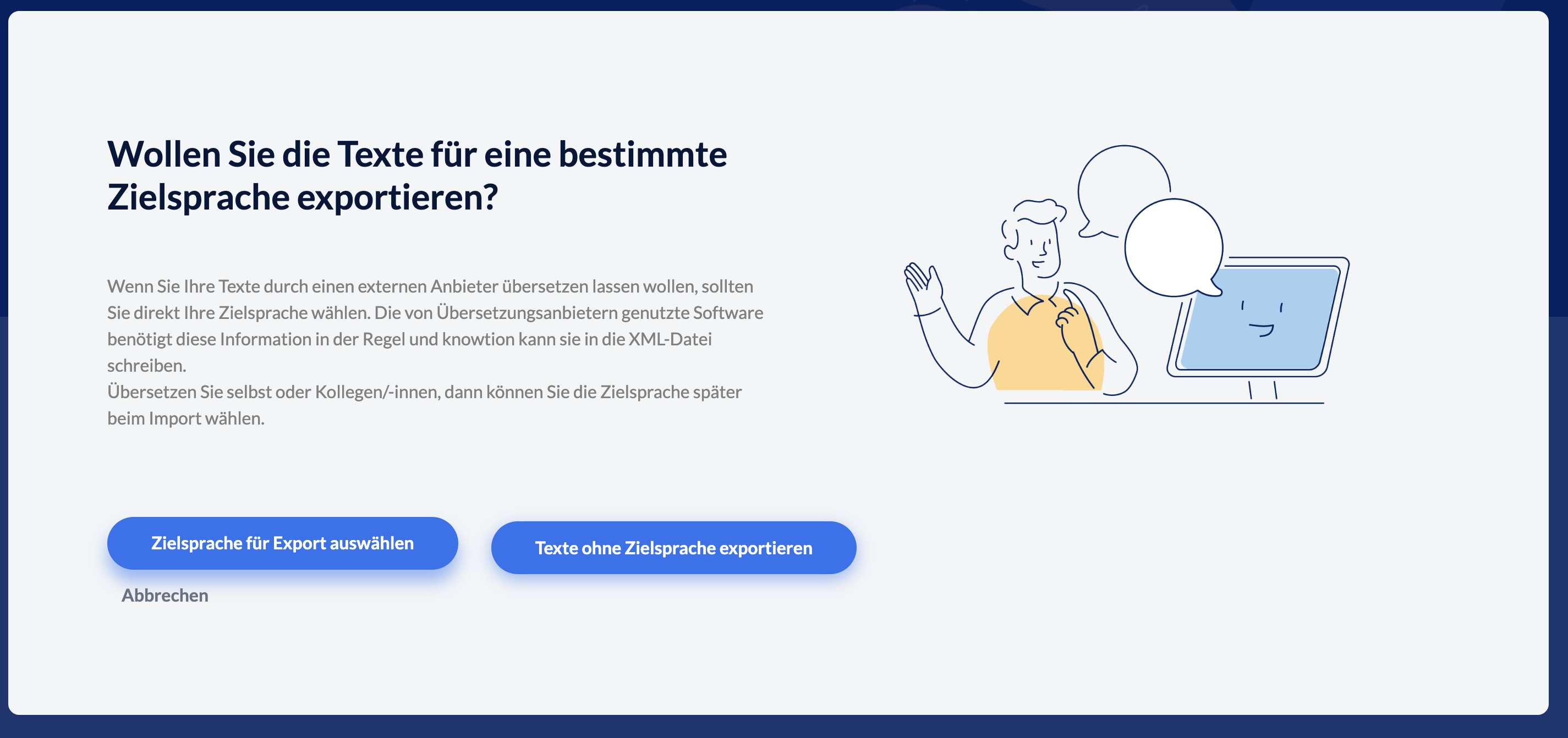 Sie könne die Datei in ihrer gewünschten Zielsprache, oder ohne Zielsprache exportieren.