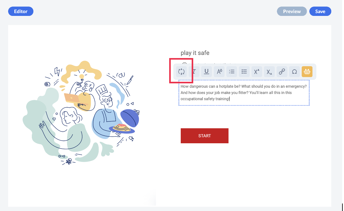 Klicken Sie dazu auf der entsprechenden Seite im Texteditor folgenden Button: