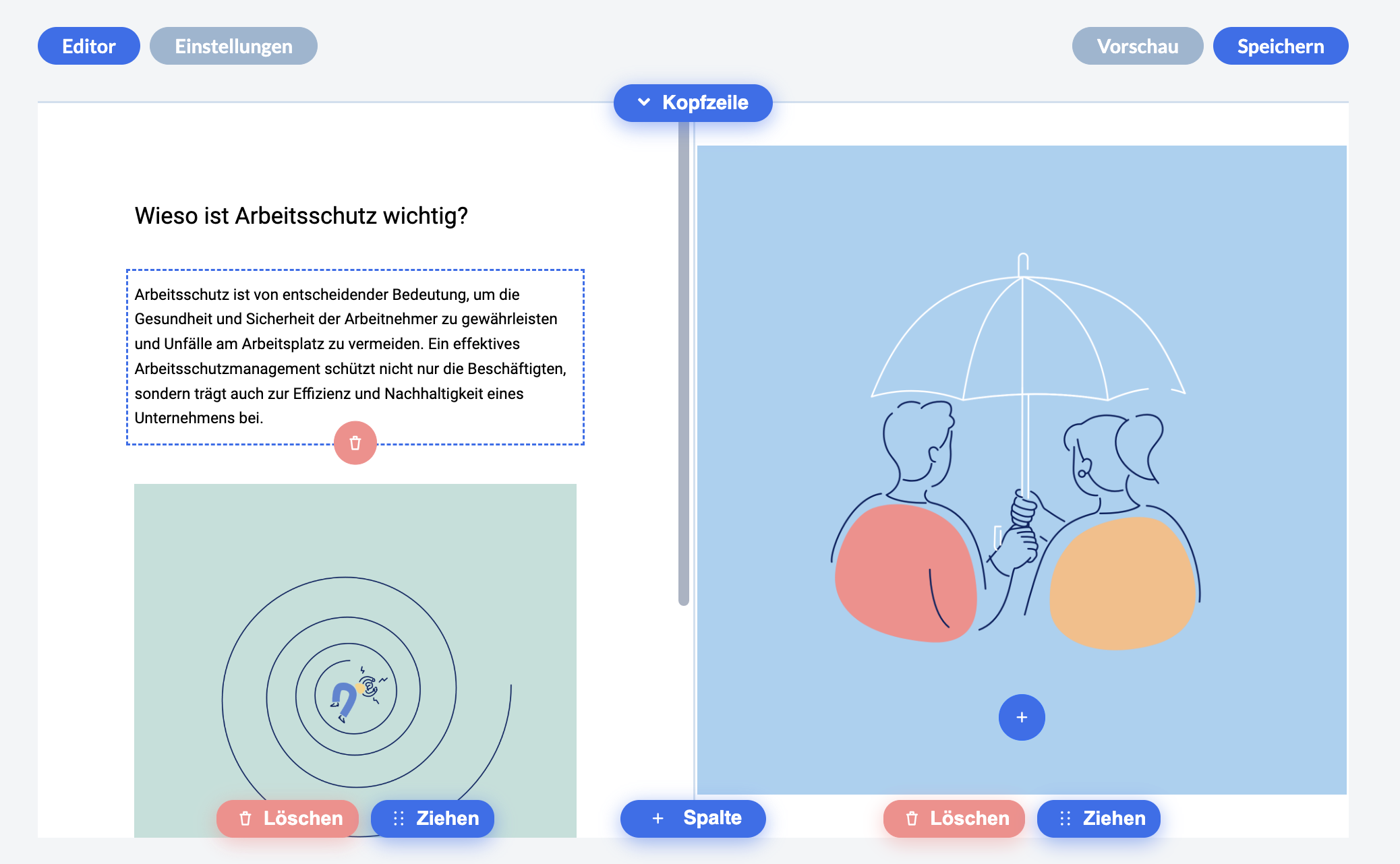 Fügen Sie über den Button unten eine weitere Spalte hinzu (maximal drei Spalten möglich)