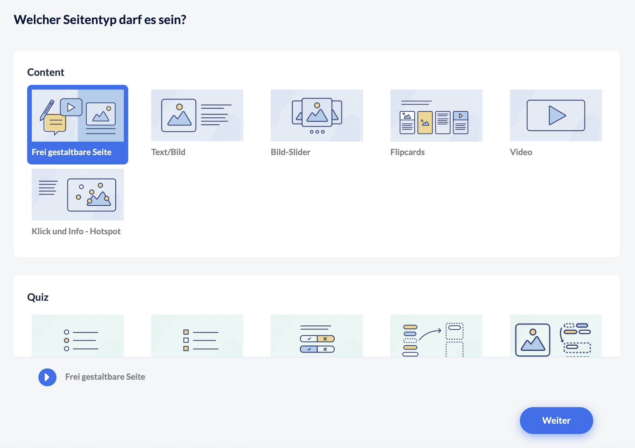 Die verschiedenen vordefinierten Seitentypen reichen Ihnen nicht? Sie wollen zum Beispiel ein Bild mit einem Text und einer Flipcard selbst kombinieren?
