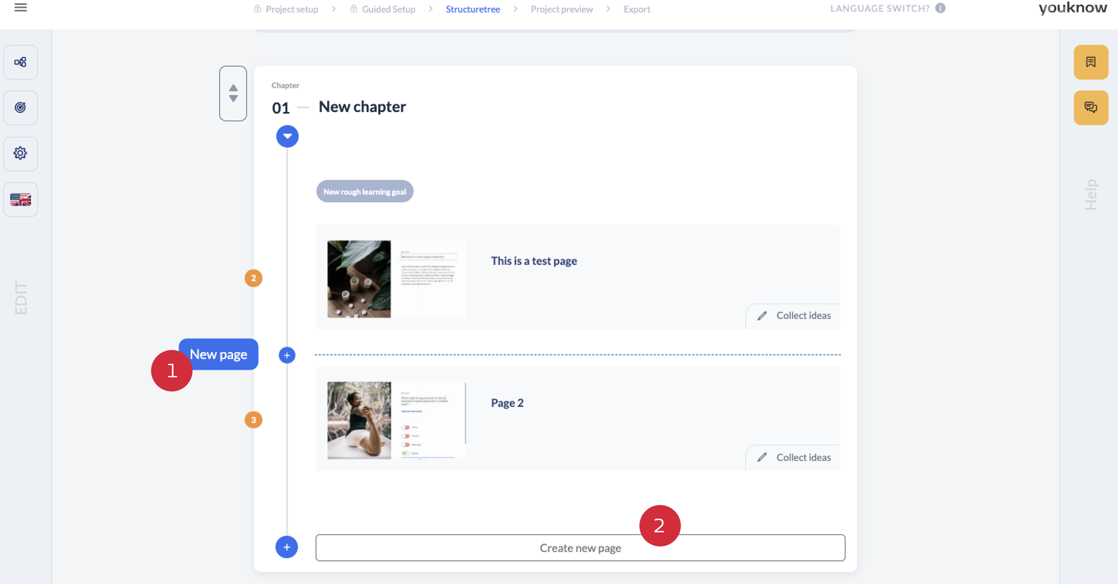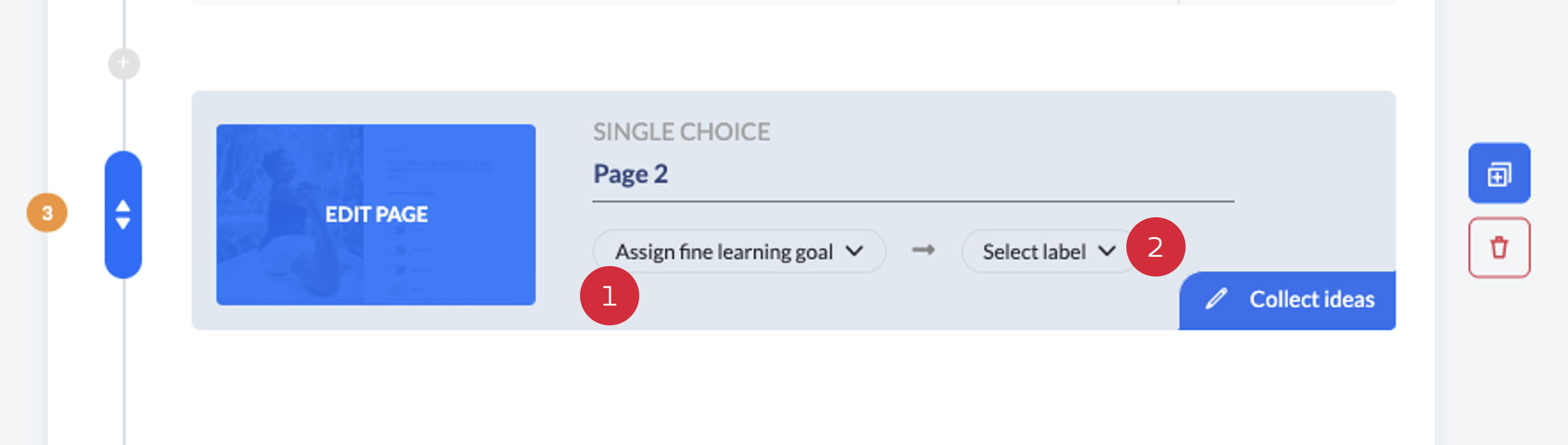 In order to receive customised tips for the subsequent page design in our Guided Mode, we recommend that you assign the appropriate learning objective (1) and a label (2) to the new page: