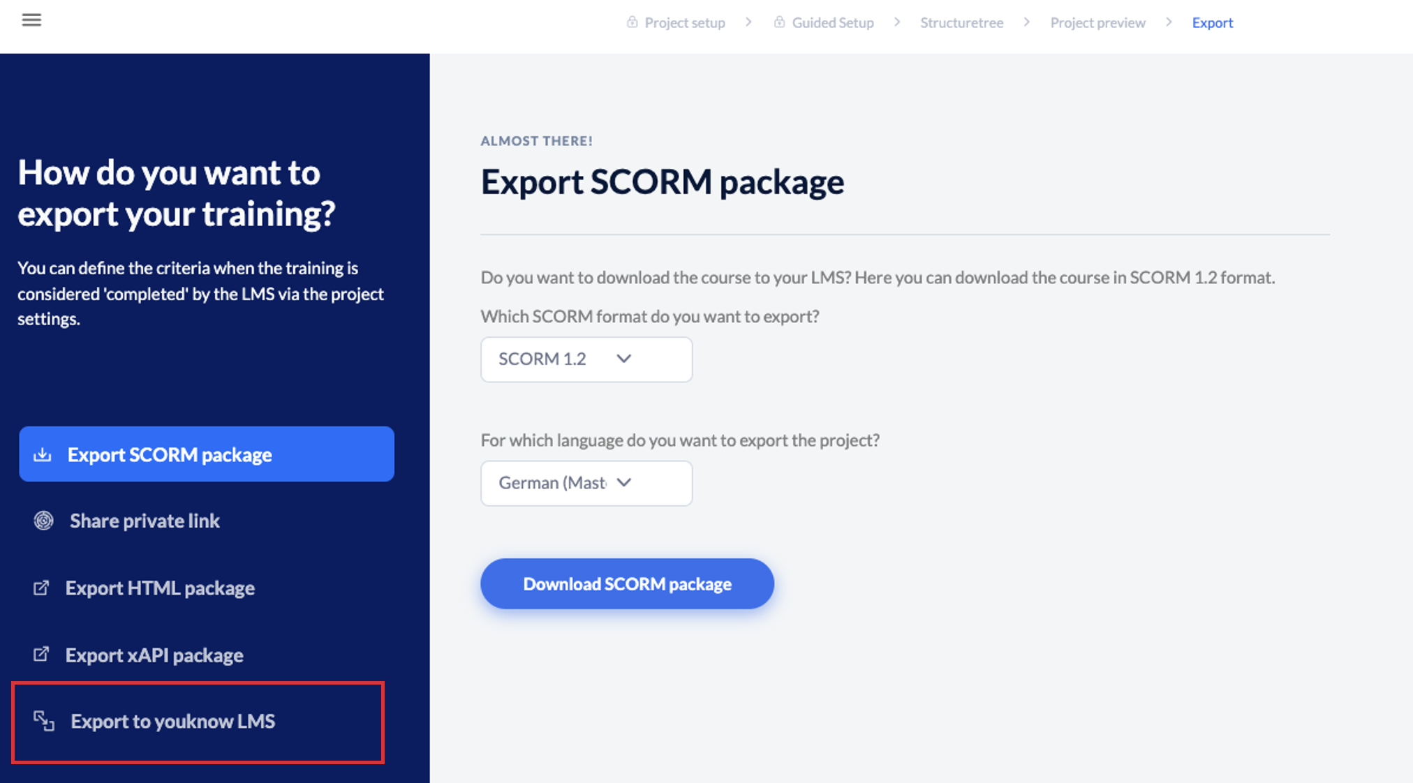 If you have a youknow LMS, you can export the training directly to your LMS using the button at the bottom.