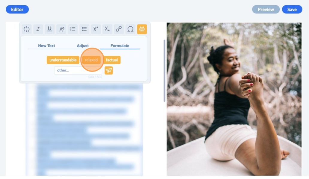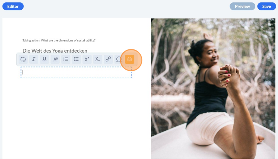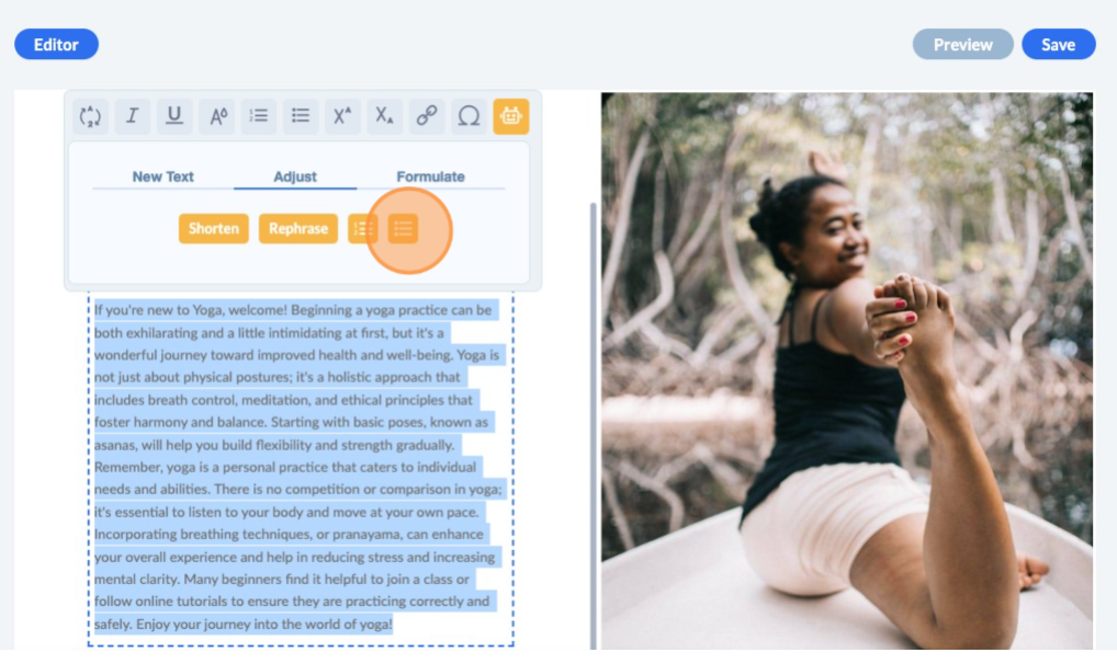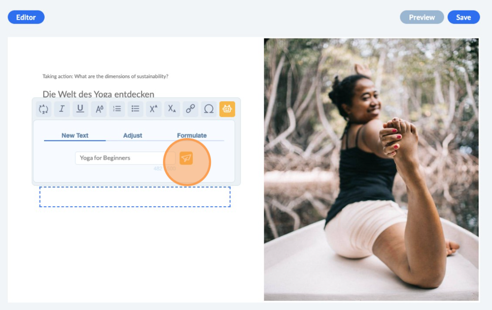 Are you already familiar with our AI feature in the text editor? Just click on the yellow robot button and get optimal support: