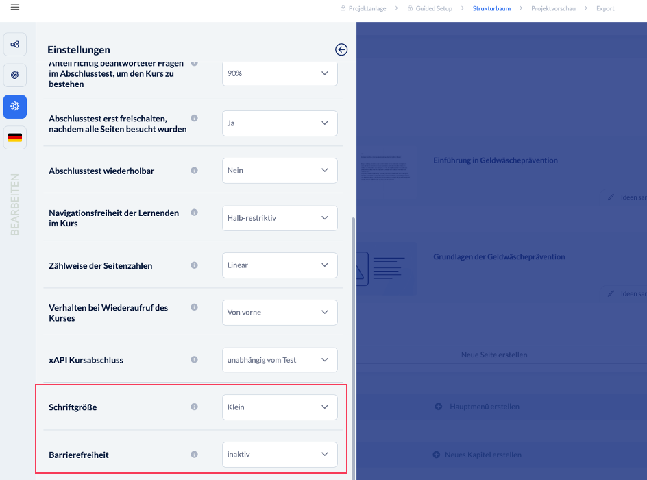 Make sure that your exported project complies with the legal requirements for accessibility.