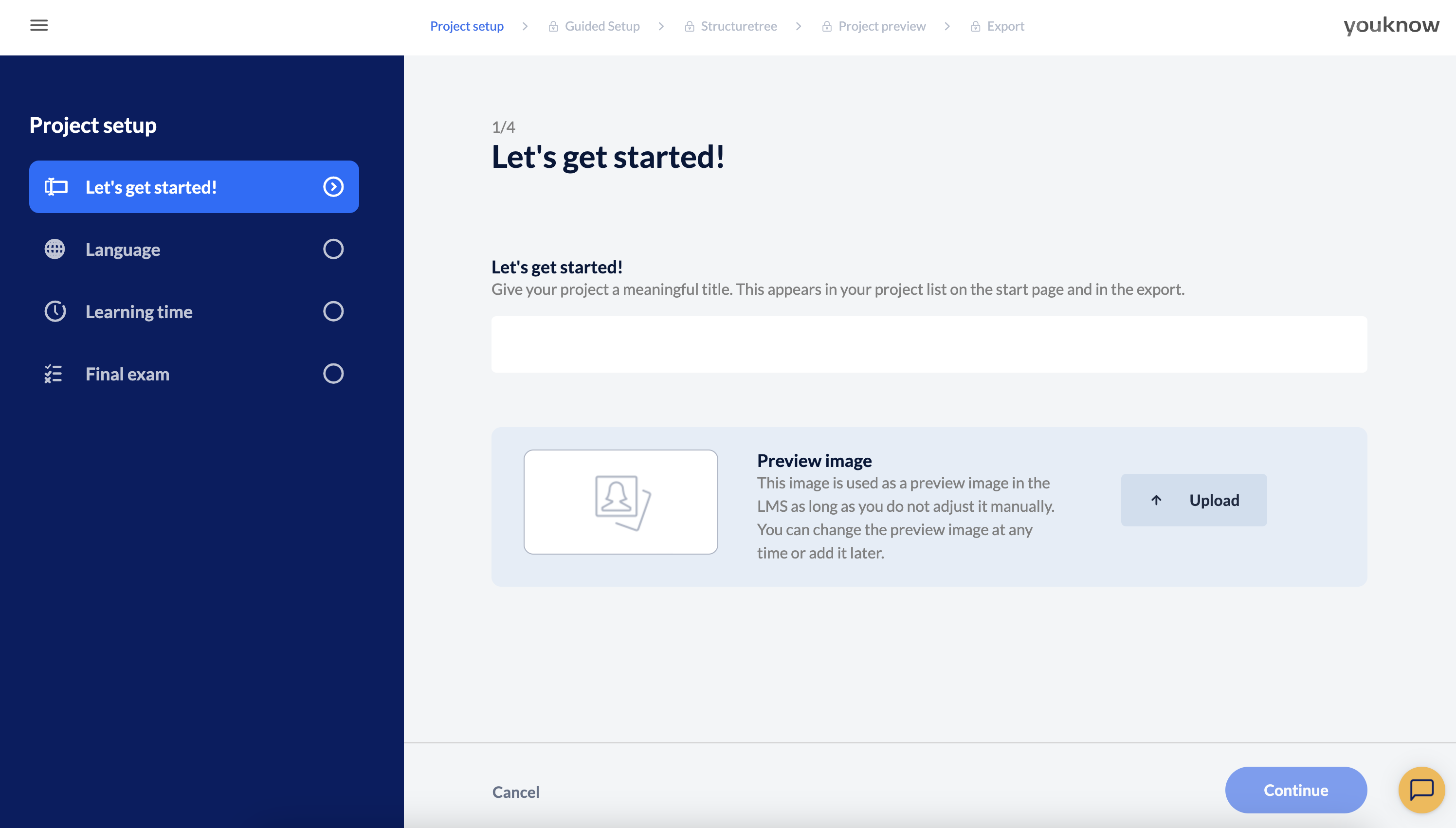 You also have the option of uploading a preview image for your training on this page – do it right away or later. This preview image will be displayed in the project list and later after the export in the LMS, where you can of course change it at any time.