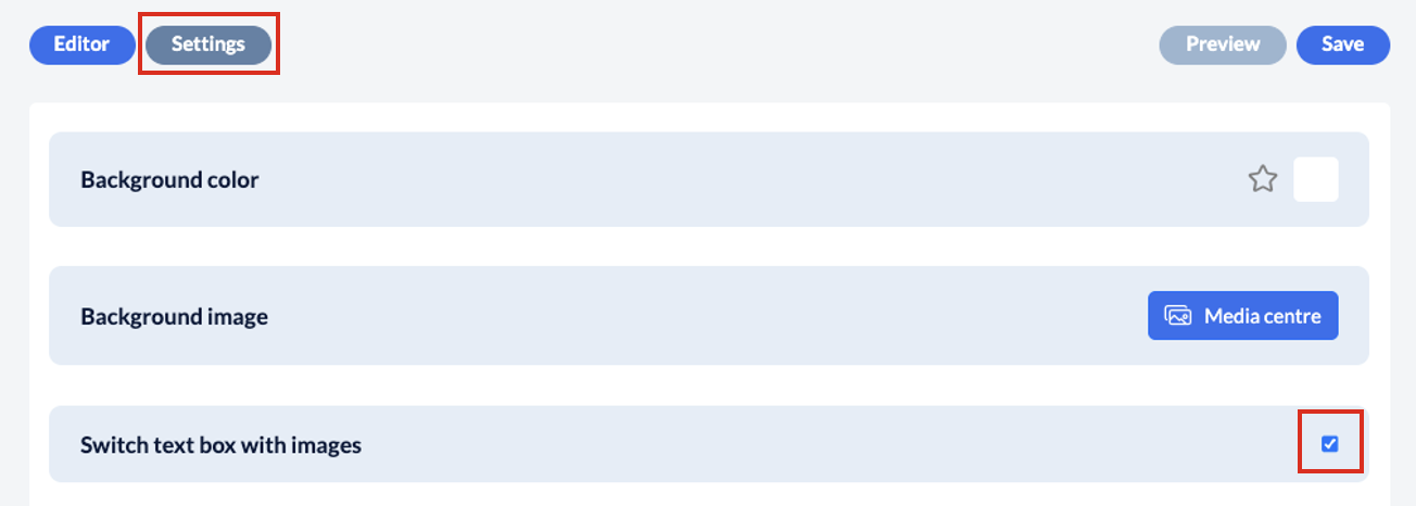 Once you have selected the layout, you can check the corresponding box in the upper left corner using the “Settings” button: