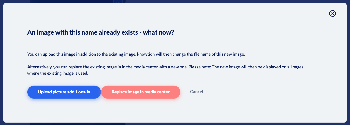 Cancel: You can cancel the process and search for the relevant image in the media center and insert it if necessary.